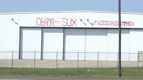 Sign greets Obama at airport arrival